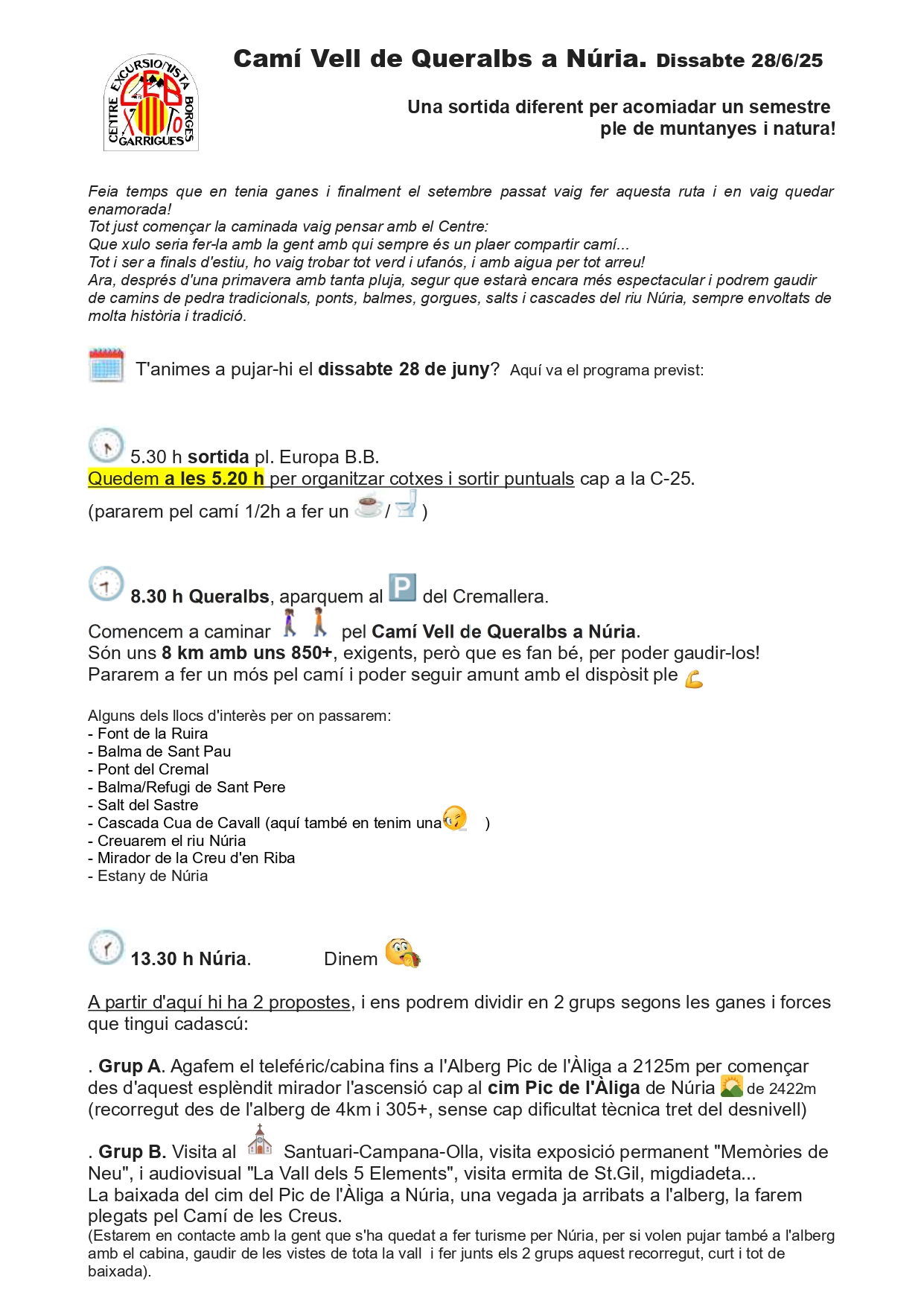 Sortida pel Camí Vell de Queralbs a Núria